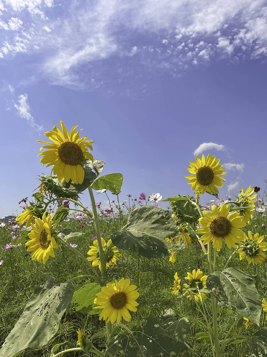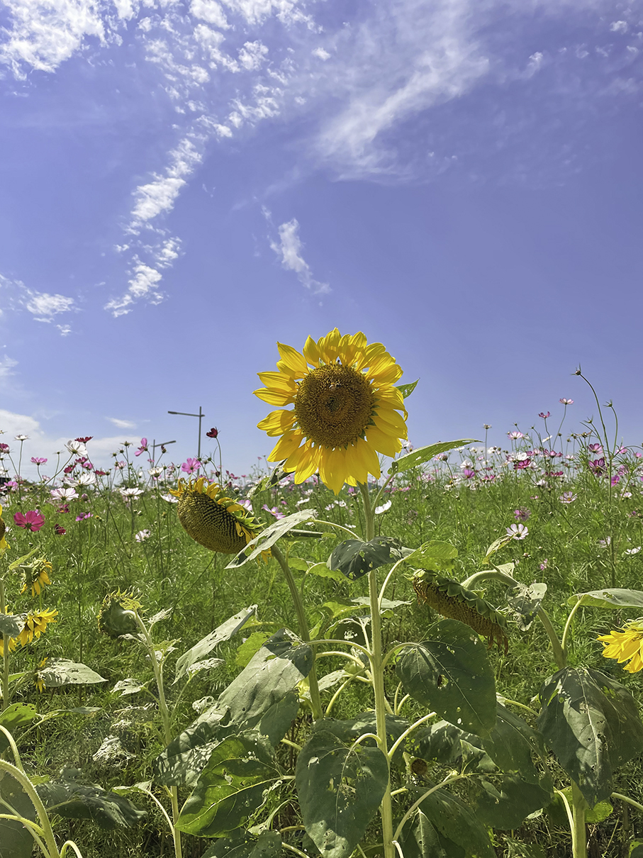 해바리기는 코스모스에 비해 작게 심어져 있었는데